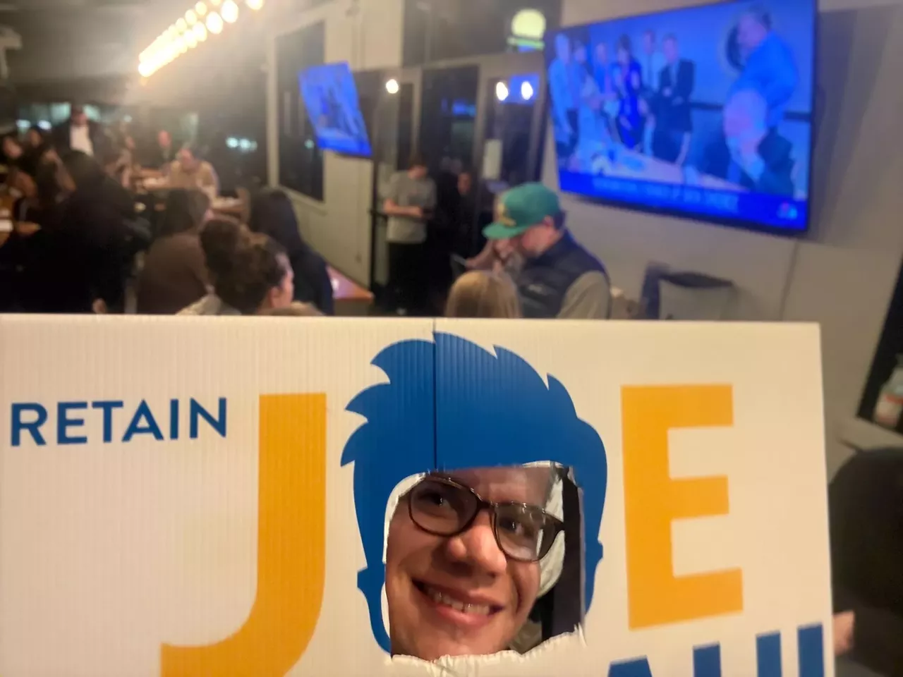 Balducci spoke to the crowd a few minutes later. "It's much, much closer than it was on Friday," she said. "There's a small amount [of ballots] that gets counted on the first night. We'll see what happens over the next few days, and we'll be putting out messages, letting everybody know how we're doin'. We really, really changed the trajectory. We'll see what happens next. But: too close to call."