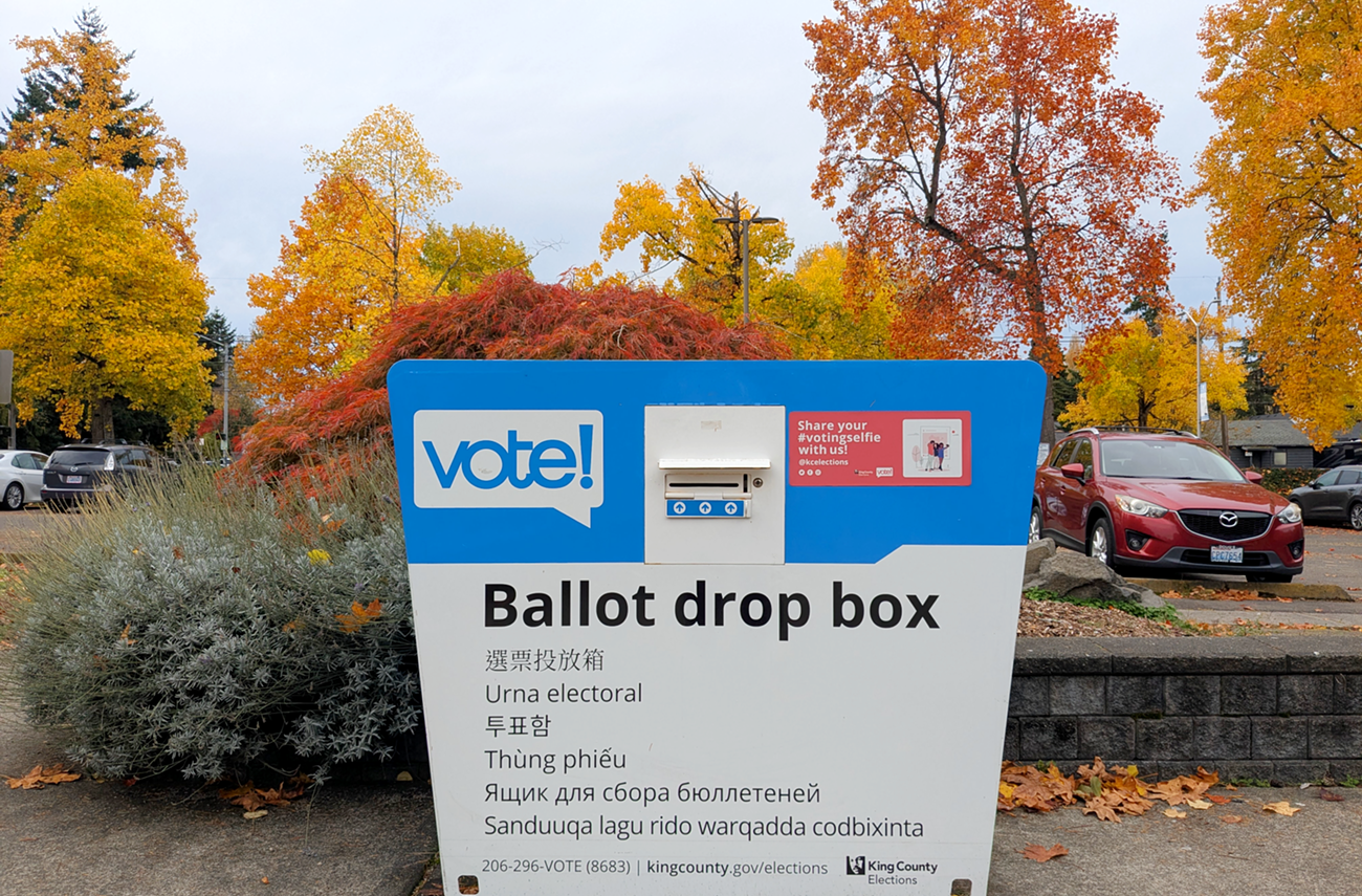 A person with a megaphone announced the final minute before the ballot box closes, âOk Seattle, you have one more minute to get your ballots in!â A few people literally ran down the street and tossed their ballots in the box action move style.