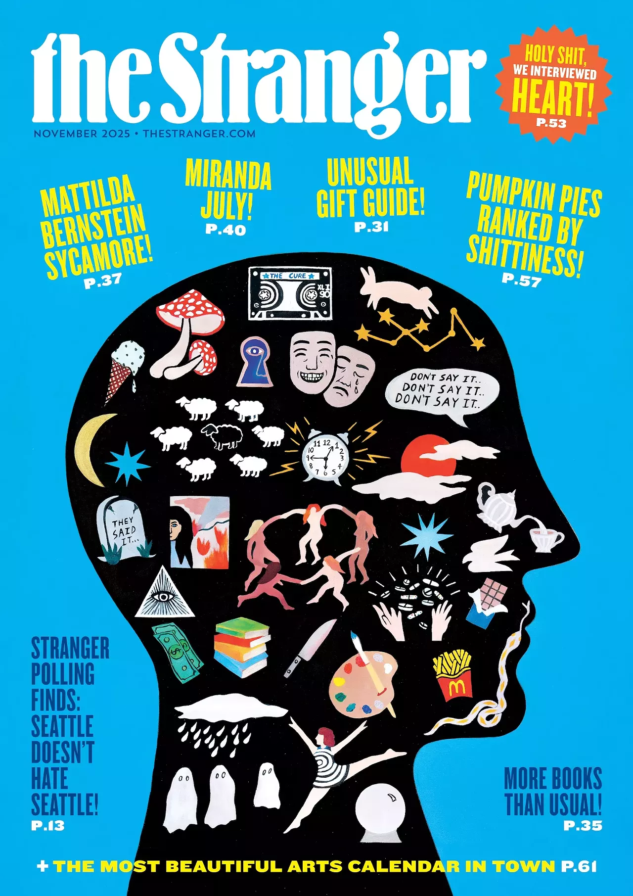 But thatâs where the holiday content stops! This is not a holiday issue! This is a Dean Johnson issue, a history of womenâs soccer issue, and a haunted puppet-show issue. There are interviews with Seattle rock legends Heart, writer/filmmaker Miranda July, and local author/style maven Mattilda Bernstein Sycamore.