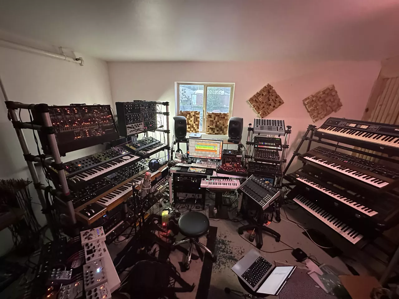 In my art studio, I have a collection of hand tools I use for woodworking, wood carving, etc. I was trained as a wood carver in my community. I also have a growing collection of analog synthesizers, which are also tools for the music studio.