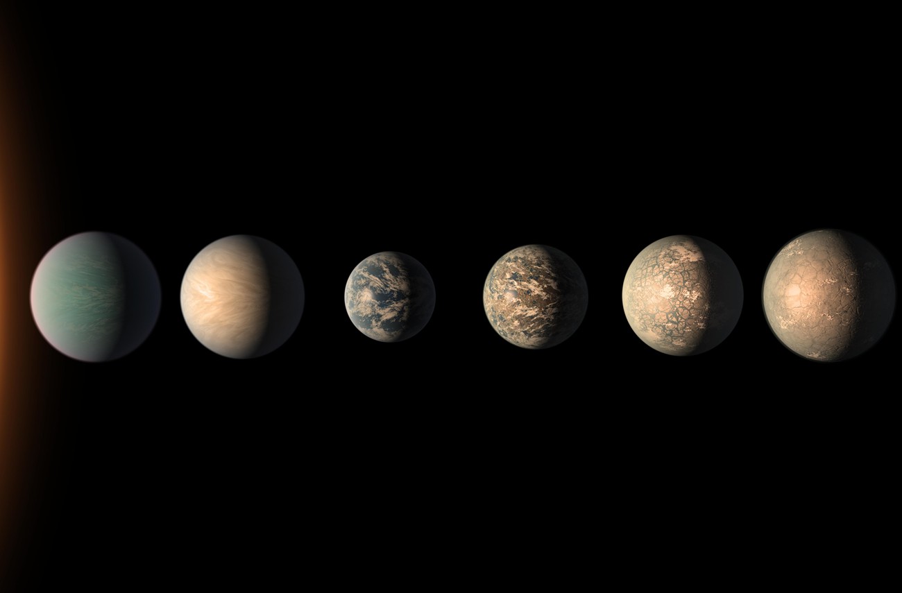 Discovered in the last year of the previous century, the star is not bright and hot and bothered like the sun. It's cool and small (the size of Jupiter) and steady as she goes. It's a red dwarf that's only 40 light years from us, from the sun, which has been around for 5 billion years and will be gone in 5 billion years. TRAPPIST-1 has been around for 7.5 billion years and will be around for something like ten trillion years from what we experience as now. That's basically forever. TRAPPIST-1's end (if it can even be called that) will happen long, long, long after the universe as we know it has ceased to be; a red dwarf persisting in a darkness that's almost unimaginable; a solitary star weakly illuminating its seven rocky planets, three of which appear to be hospitable. These extraterrestrial bodies are not spread out like the ones in our solar system but are so close to TRAPPIST-1 that they appear in each other's skies bigger than or as big as our moon. Â
