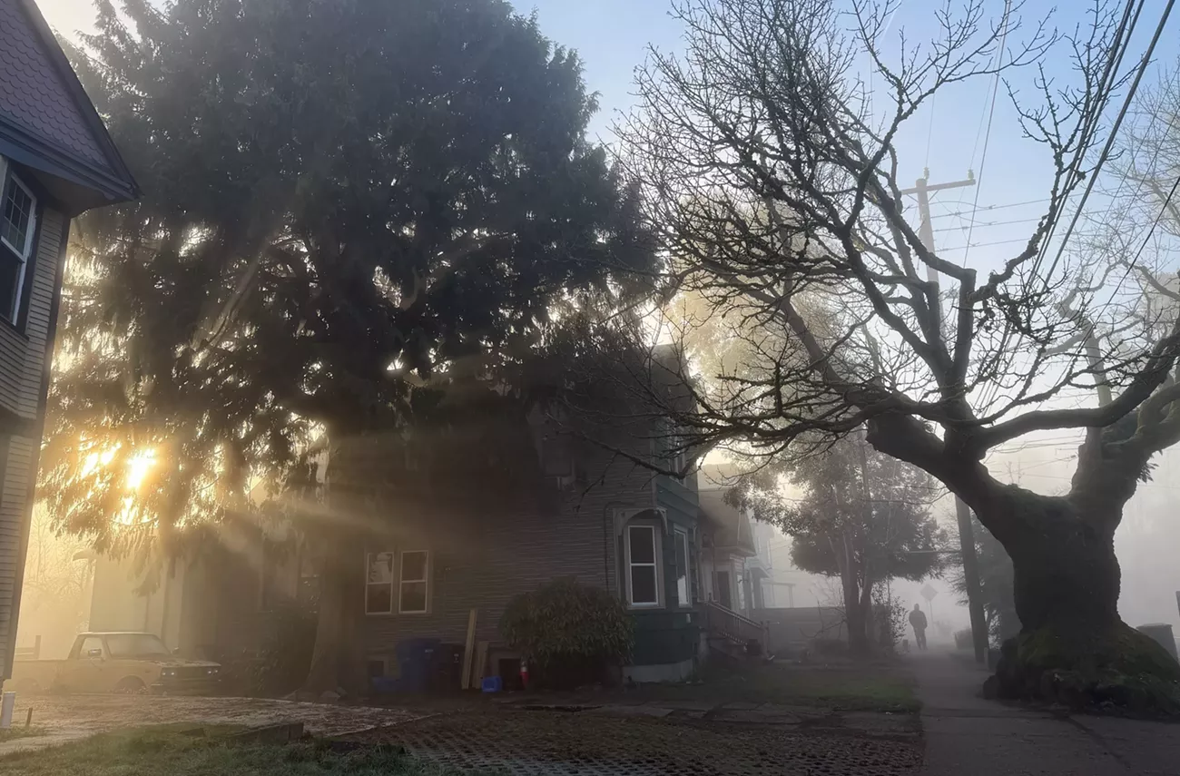 Did I even talk about the weather? I did not. Today, I’m just going to look out my window here in Columbia City, and like that famous “Fast Song” skit on In Living Color, tell you what I see. Fog, which is slowly lifting. Across the street there’s a huge apartment complex under construction. It’s not as ugly as the one in Ballard, Urbana. Next to the construction site are some birds that appear to be bickering. European Starlings? The members of that featured class seem to never get along. They are always going at each other about something or another. They fly to this tree and bicker. Then they fly to another tree and continue bickering. If reincarnation is a thing, my hope is to return as a European Starling so that I can finally learn what the fuss is all about.