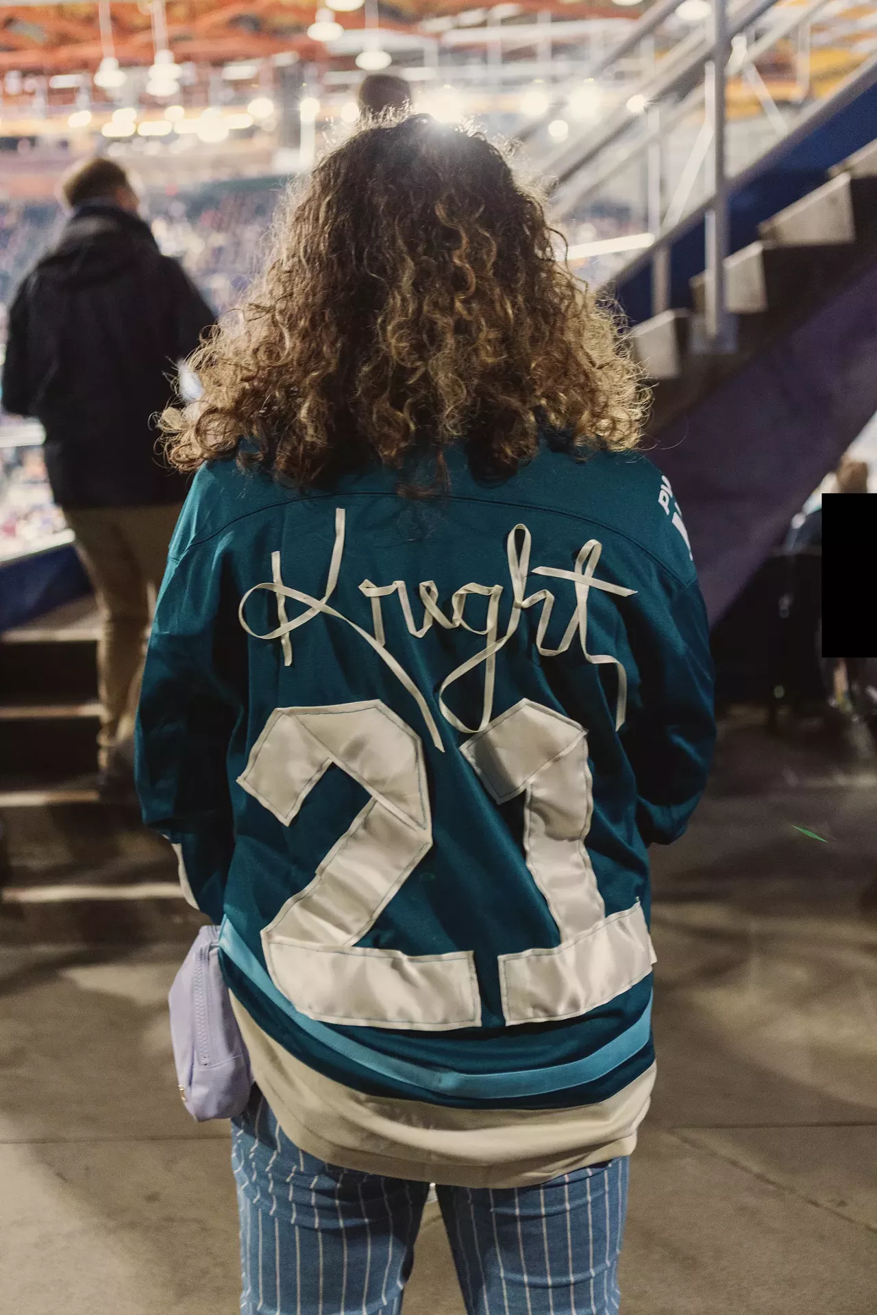 A fan shows off the jersey she made to celebrate team captain Hilary Knight at the Seattle Torrentâs inaugural game in Vancouver, BC, on Friday, November 21.