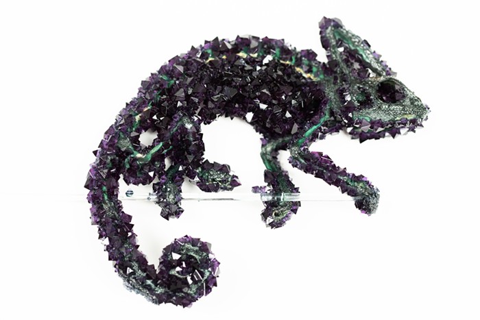 Last week, two women in wetsuits—one yellow, one blue, both breathing through snorkels—spent five-and-a-half hours submerged in an inflatable kiddie pool. They’d set up shop in the Hedreen Gallery and had arranged tarot iconography on the walls and floor, lit incense in front of a small, uterine-shaped statue of a woman holding two gold eggs above her head, and suspended a wolf hide several feet above the pool. Red liquid dripped from the wolf’s snout, as slowly and regularly as a water clock. Someone in the gallery said it was coming from a sack of pig’s blood hidden inside. As the audience came and went, the water turned redder and the pool began to smell like iron. I had hoped to stay until the performers—who nosed slowly around the edges of the pool like slender manatees—got out, to see what state they were in. But another performance artist named Ethan Folk informed me that the gallery was closing and the artists wanted to emerge from their self-imposed underwater prison in private.