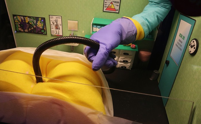 Being shut off from the outside world only heightens your interactions with the exhibition, composed of tactile sculptures that immerse viewers in brilliant light and sound. Visitors have the opportunity to do things like grow and quash life with the press of a button, use a glowing LED cube controller to explore different graphic and sonic environments, and play with a 3-D simulation of slime mold. And before you ask—yes, this is deliriously fun to go to if you're stoned.